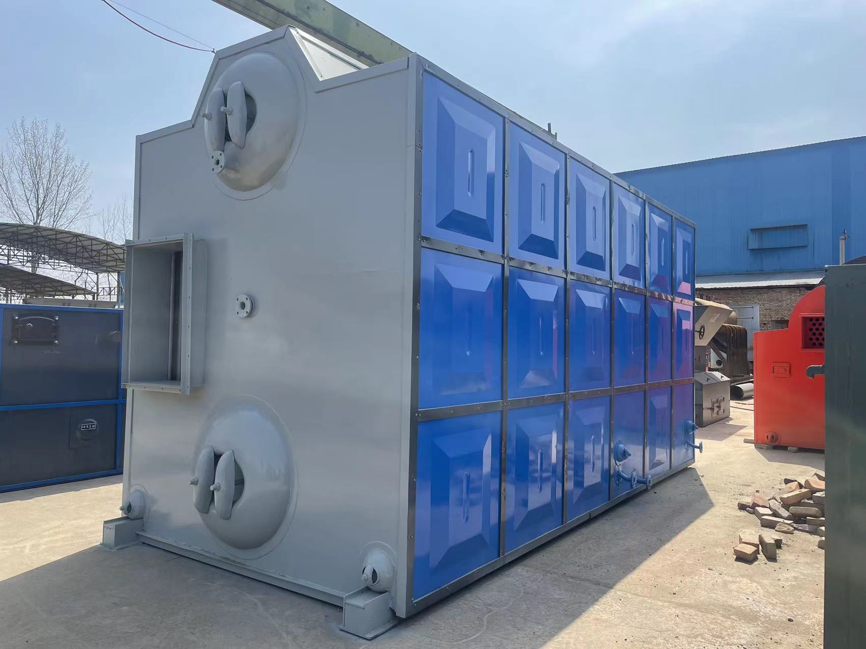 生物質蒸汽(qì)鍋爐兩側布置水冷壁構成爐膛及對流煙(yān)道,蒸汽鍋(guō)爐鍋筒內布置有單回程(chéng)螺紋煙管。爐膛內采用水冷整澆的前拱、後拱。前拱為階(jiē)梯形,後(hòu)拱為人字形,使拱的覆蓋率接近85,有利於(yú)生物質燃料的燃燒(shāo)。采用大塊式鏈條爐排實現機(jī)械式燃燒。配鼓引風機進行(háng)機械通風(fēng),並配以(yǐ)出渣機實現(xiàn)機(jī)械出渣,控製監測儀表(biǎo)齊全。